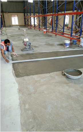 The concrete floor is thoroughly examined and as per requirement the floor is treated.(I) Overlaying: Its done by applying a new layer of Ultra High Performance Concretehaving a thickness of 50mm- 75mm over the existing surface to improve its appearance and performance.