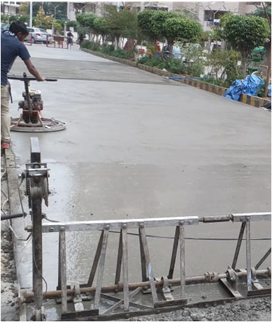 (III) Finishing: The concrete overlay brushed finished using a broom brush. Advantages of Whitetopping: